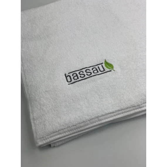 Na ręczniku znajduje się wyhaftowane logo Bassau.